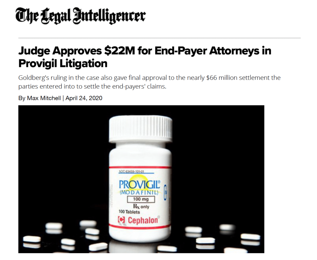 In the News: Judge Approves $22M for End-Payer Attorneys in Provigil Litigation